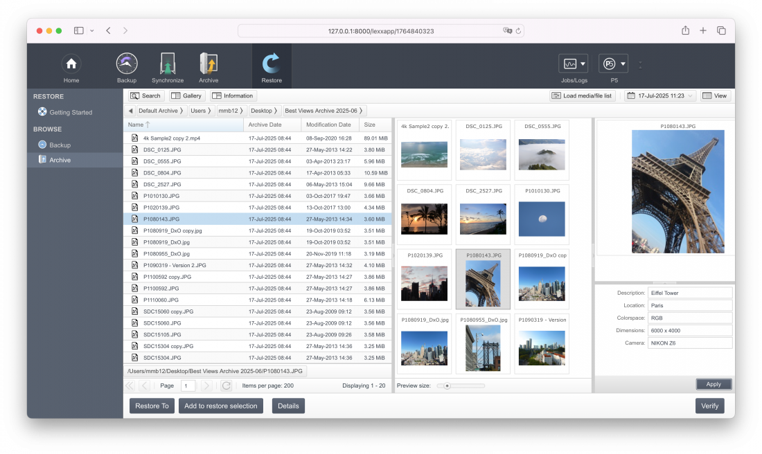 - Vorschau und Auswahl: Wählen Sie vor der Verarbeitung aus, welche Versionen wiederhergestellt werden sollen.